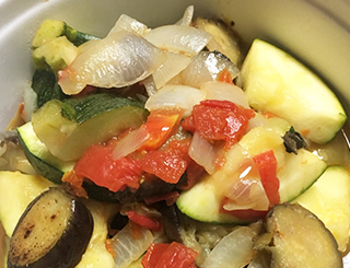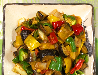 じゃがいも・茄子・にんじん・赤パプリカのじっくりトマト蒸し煮
