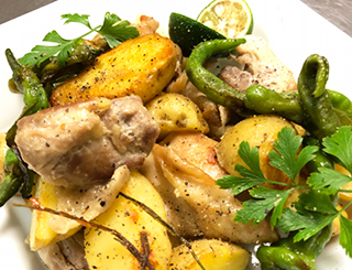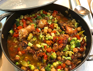 かぼちゃとじゃがいも・玉ねぎ・トマトの蒸し煮